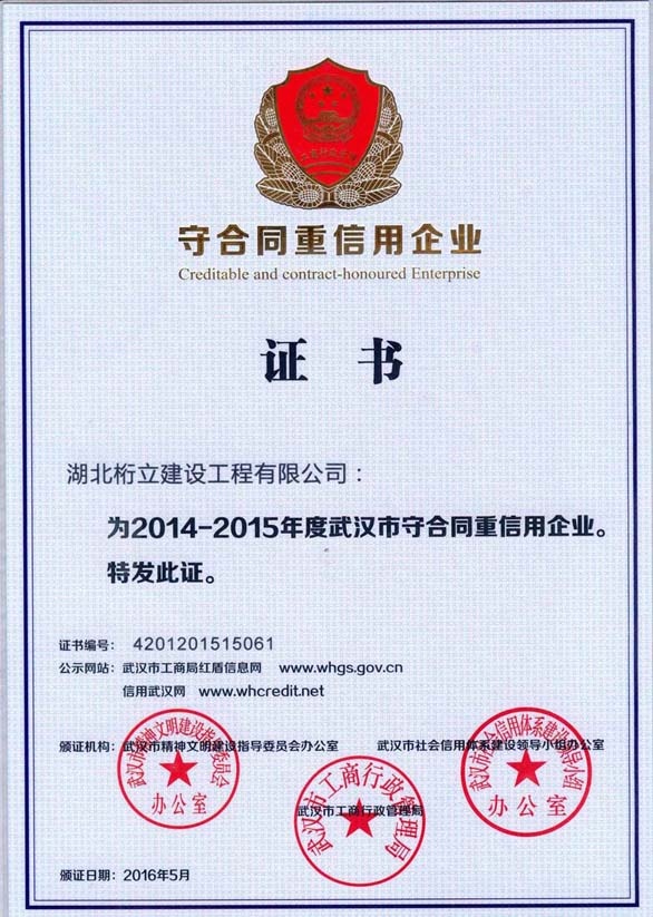 武汉市守合同重信用企业证书